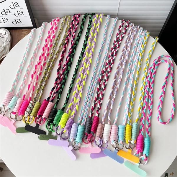 IPhone 15pro用のカラフルな織り電話ストラップ,かわいいスポーツストラップ,携帯電話コード用の長いペンダント,スタイリッシュなファッション