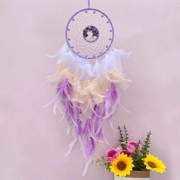 生命の木手織りクリスタルウィンドチャイム、ドリームキャッチャー、フェザー、リビングルーム、壁掛け装飾品、誕生日、卒業式ギフト