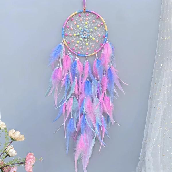 カラフルな手織りフェザーウィンドチャイム、ドリームキャッチャー、ベッドルームハンギングオーナメント、壁の装飾、フェスティバルパーティーギフト、ホームアクセサリー