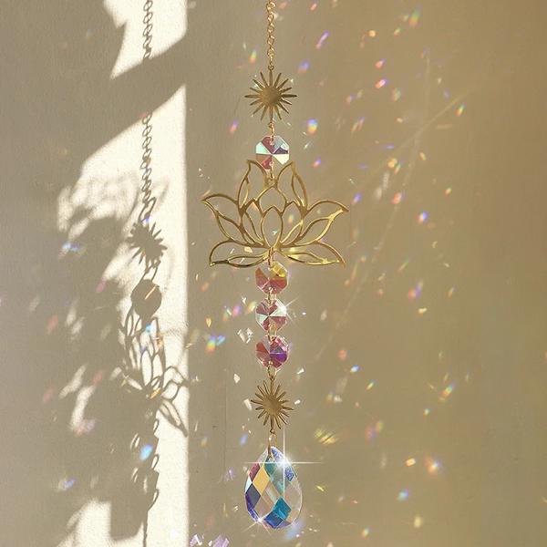 クリスタルサンキャッチャーペンダント,蓮の花のプリズム,風鈴,自然な色,窓の吊り下げペンダント,室内装飾工芸品