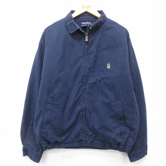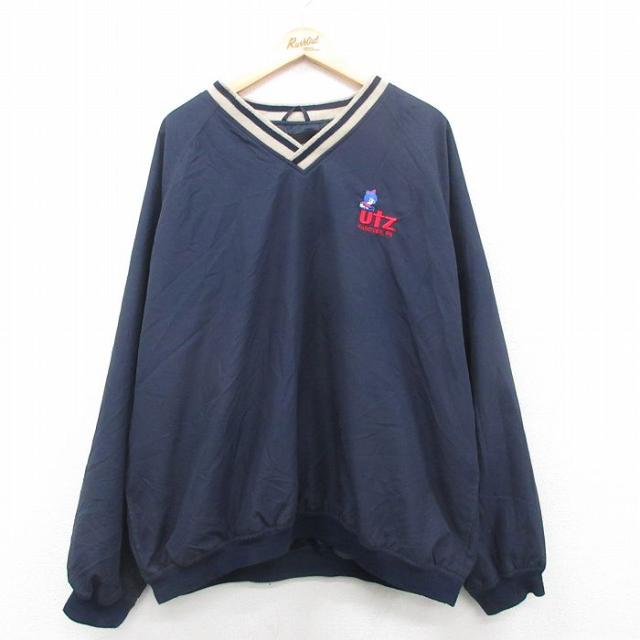 【商品名】 XL★古着 ナイキ NIKE 長袖 ジャケット メンズ ワンポイントロゴ 大きいサイズ Vネック 紺