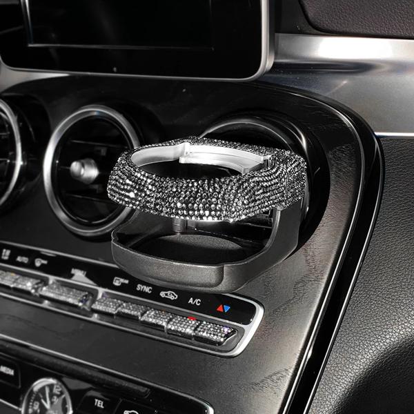 ドリルされたフロント空気出口ウォーターカップホルダーラインストーンドリンクホルダー灰皿ウォーターカップケトルカーアクセサリー