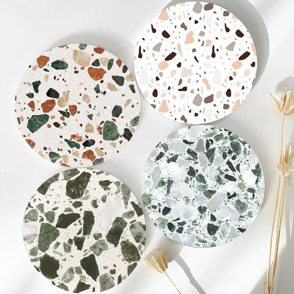 Terrazzoセラミック吸収機、ドリンク用の木製ストーンコースター、新築祝いの贈り物、家の装飾