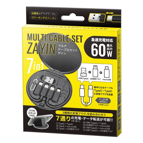 7通りの充電・データ転送が可能なマルチケーブルセットです