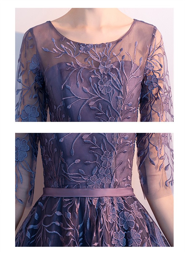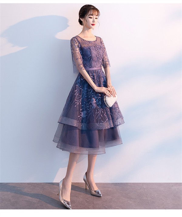 ドレス 大人 ピアノ発表会 ドレス 演奏会 ミモレ丈 結婚式 パーティードレス ミモレ丈ドレス ファスナー お呼ばれ 袖あり 高級感 二次会 20代 30代 きれいめ パープル da051c6c6m5