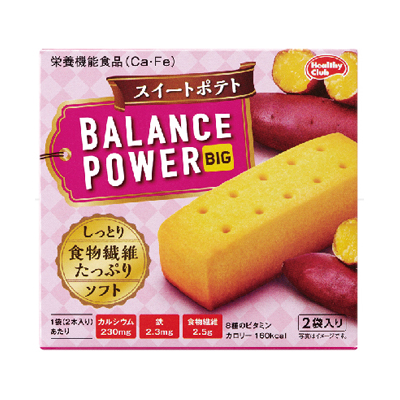 | 商品特徴: | 人気のバランスパワーシリーズの 厚焼きタイプの商品です。 食べ応えのあるボリューム感が特徴です。 さつまいもを使用したスイートポテト風の しっとりソフト食感のクッキーです。 1袋(2本)あたりカルシウム230mg&鉄2.3mg配合 |