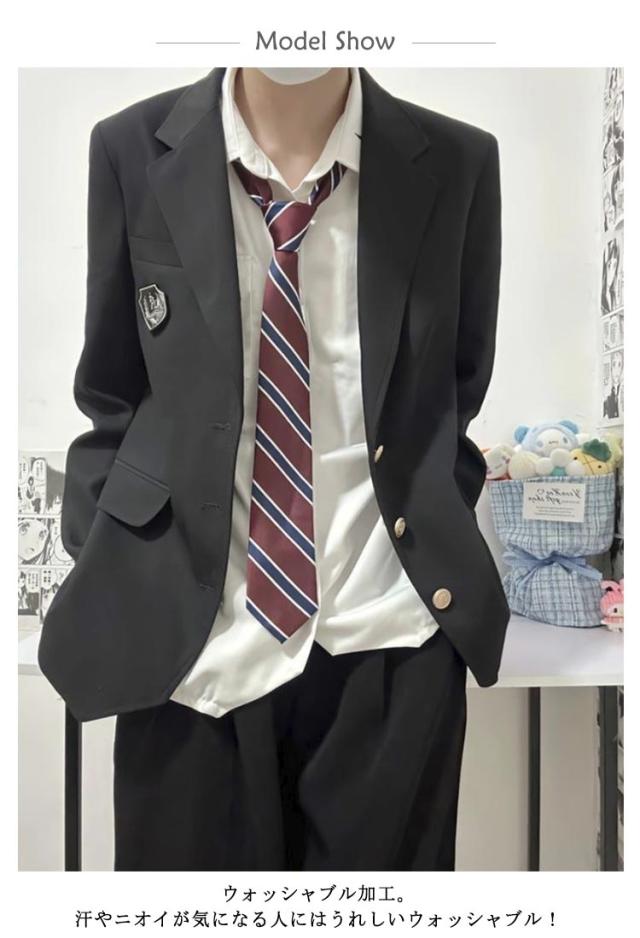 男子高校制服 男子 ブレザー 4点セット スクールジャケット スクールブレザー ロングパンツ スクールシャツ ネクタイ フォーマル スーツ 無地 学生 高校生 中学生 学生服 スーツ コート フォーマル スクール 文化祭 入学式 卒業式 黒 コスプレ 大きいサイズ