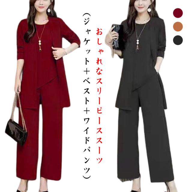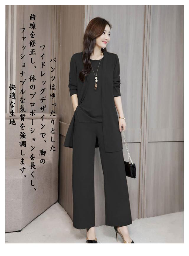セットアップ パンツスーツ レディース 3点セット 上下3点セット ワイドパンツ フォーマル ロングパンツ 入学式 ママスーツ 長袖 大きいサイズ 結婚式 入学式 スーツ 卒業式 体型カバー ワイドパンツ 通勤 ビジネス フォーマル スーツパンツ