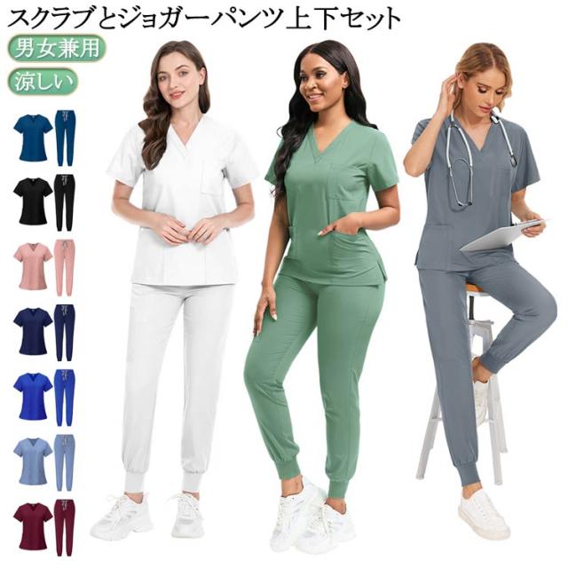 スクラブ上下セット スクラブ ジョガーパンツ 上下セット スクラブ 白衣 スクラブ 上下セット おしゃれ ストレッチ 半袖 チームスクラブ 白衣 男性 女性 兼用 スクラブパンツ ジョガーパンツ 春 夏 春夏 送料無料