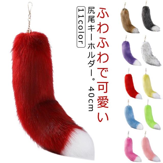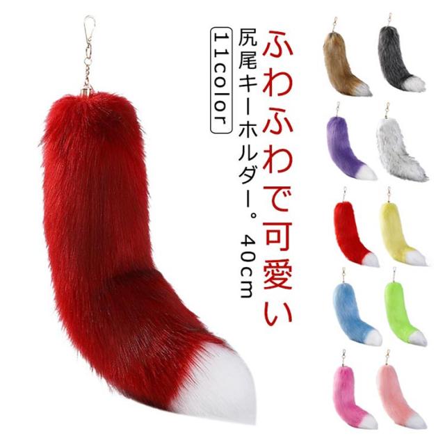 尻尾 キーホルダー しっぽ フェイクファー 狐のしっぽ 長さ40cm テール キーチェーン ペンダント バッグチャーム キーホルダー 尻尾 ファーチャーム チャーム しっぽ ファーストラップ バッグアクセサリー 可愛い ふわふわ 鍵 飾り 軽量 誕生日 男女兼用 コスプレ 仮装 衣装