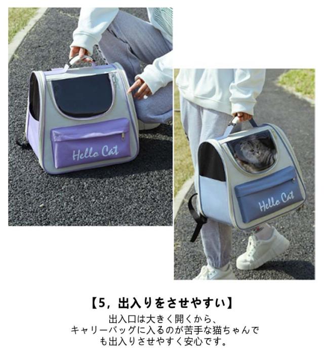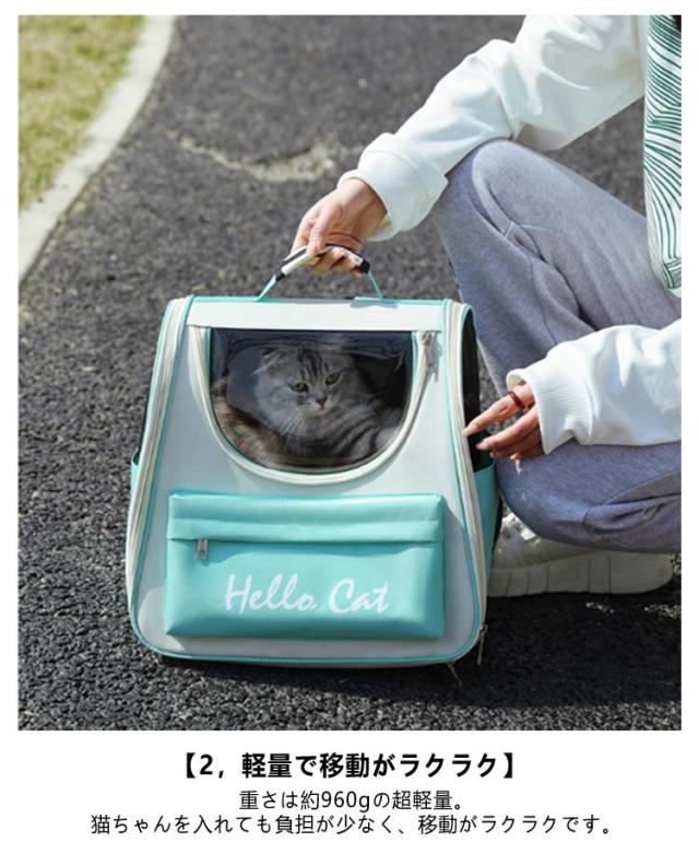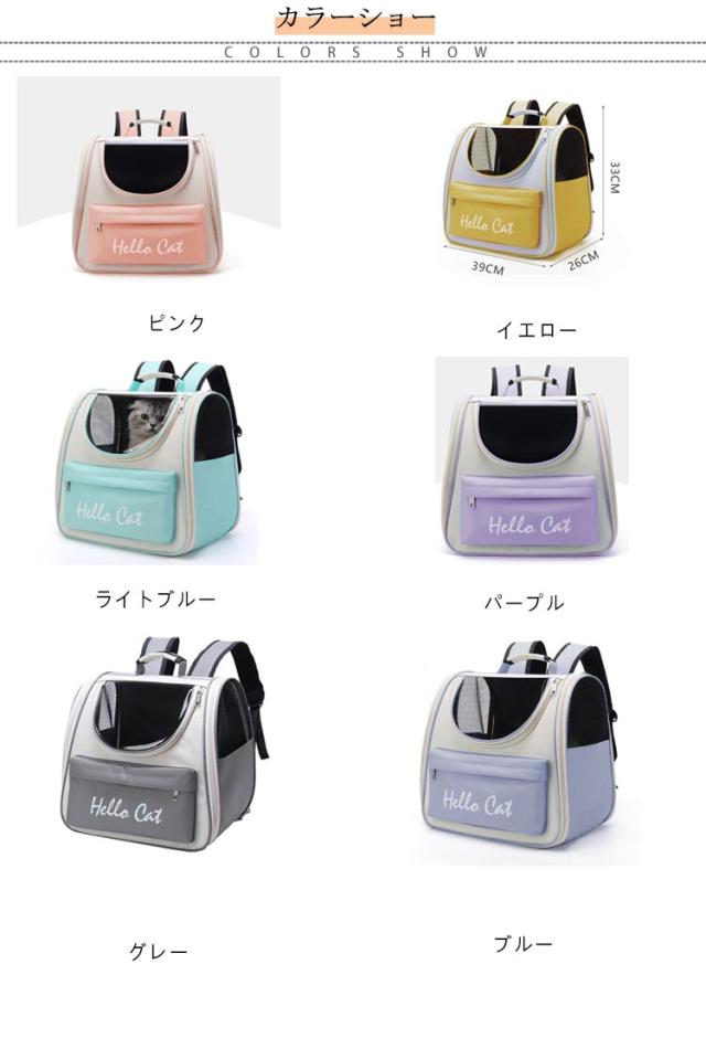 | ペットキャリーバッグ 2WAY・撥水・軽量 選べる6colos ◎選ばれる6つのポイント◎ 【1、リュックになる便利な2WAY】 手提げとしてもリュックとしても使える2WAY仕様。 リュックとして背負えば、猫ちゃんとの移動時も両手が空いて便利です。 【2,軽量で移動がラクラク】 重さは約960gの超軽量。 猫ちゃんを入れても負担が少なく、移動がラクラクです。 【3,中の様子がよく見える】 移動中も猫ちゃんの姿をしっかり確認できる、大きな透明の窓付き。 両側面はメッシュ素材で、通気性もバッチリです。 【4,撥水仕様で安心】 急な雨でも安心な撥水仕様。 大事な猫ちゃんを雨からしっかり守ります。 【5,出入りをさせやすい】 出入口は大きく開くから、キャリーバッグに入るのが苦手な猫ちゃんでも出入りさせやすく安心です。 【6,コンパクトに収納できる】 使わない時は、コンパクトに折り畳みが可能。 置き場所を選ばず便利です。 | |