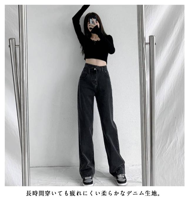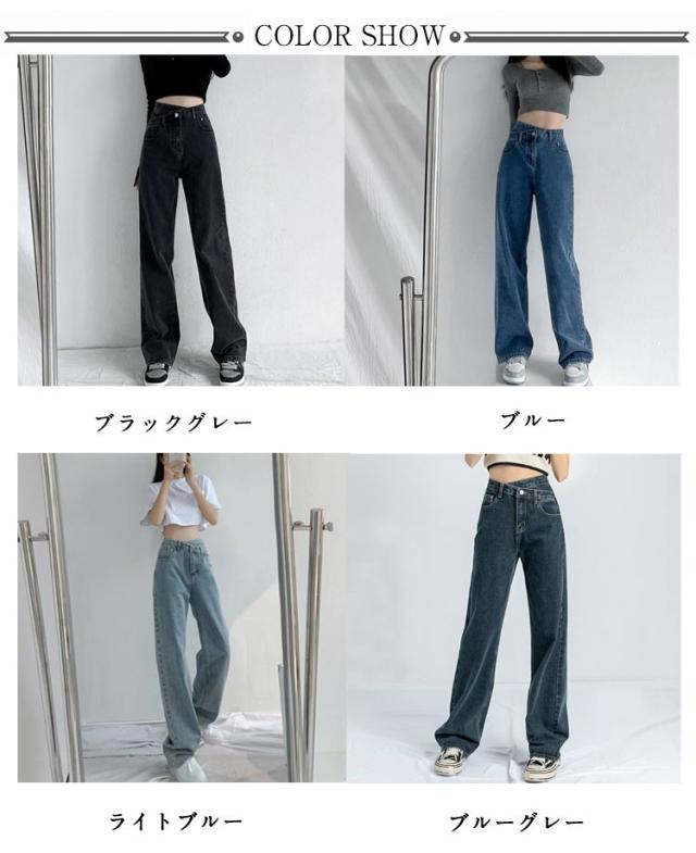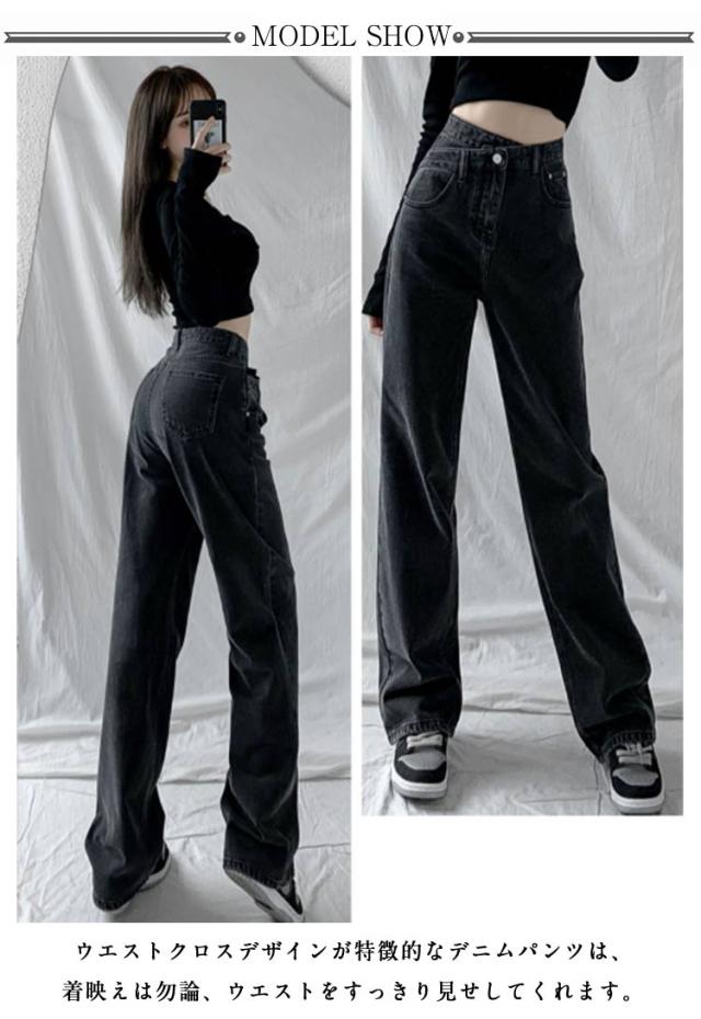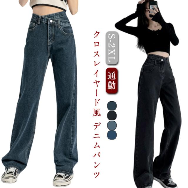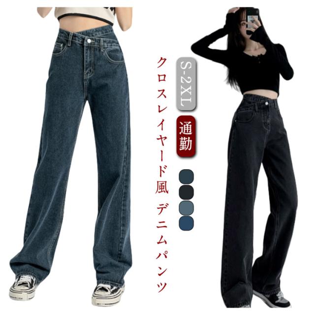 デニムパンツ クロスレイヤード風 ハイウェスト ロング丈 クロスレイヤード風 ズボン ストレート ジーパン ボトムス 体型カバー ゆったり チノパンツ シンプル テーパード カジュアル 通勤