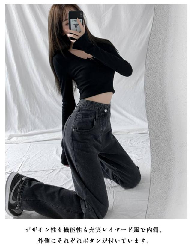 | 着痩せも楽ちんさも叶うストレートデニムパンツ。 ウエストクロスデザインが特徴的なデニムパンツは、着映えは勿論、ウエストをすっきり見せしてくれます。 美脚効果抜群足のラインを拾わないストレートシルエット。 デザイン性も機能性も充実レイヤード風で内側、外側にそれぞれボタンが付いています。 長時間穿いても疲れにくい柔らかなデニム生地。 | |