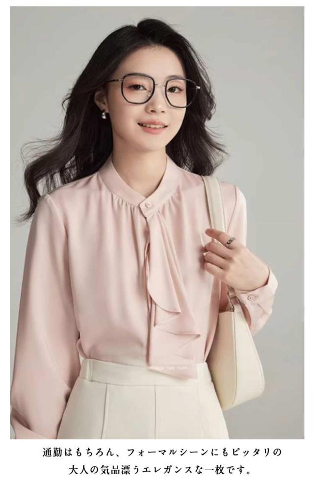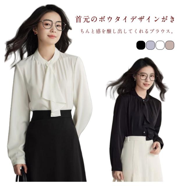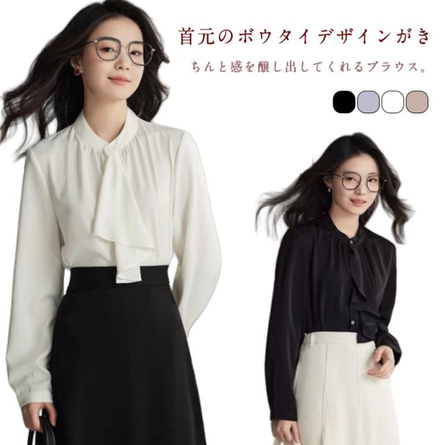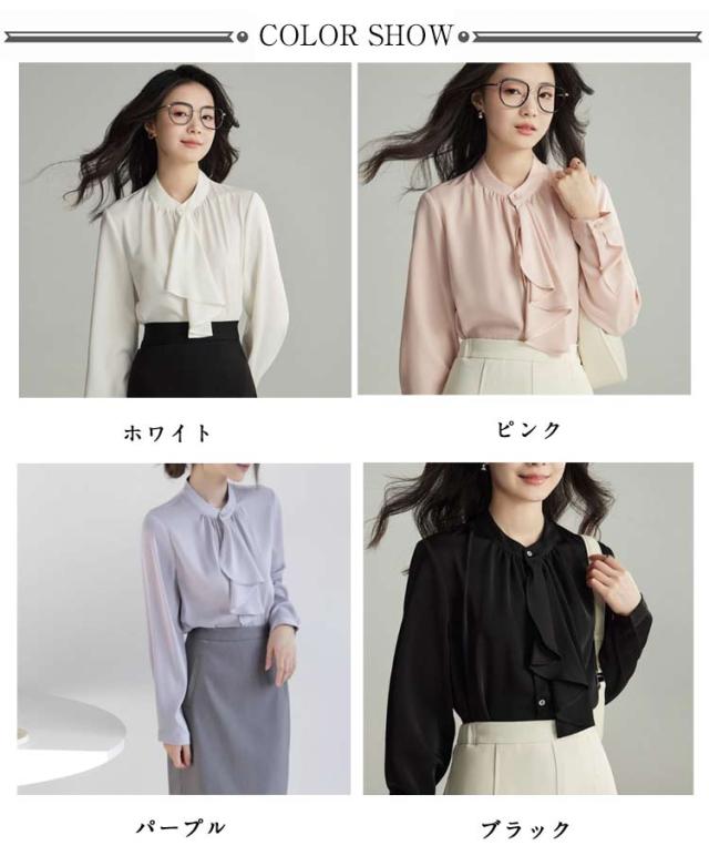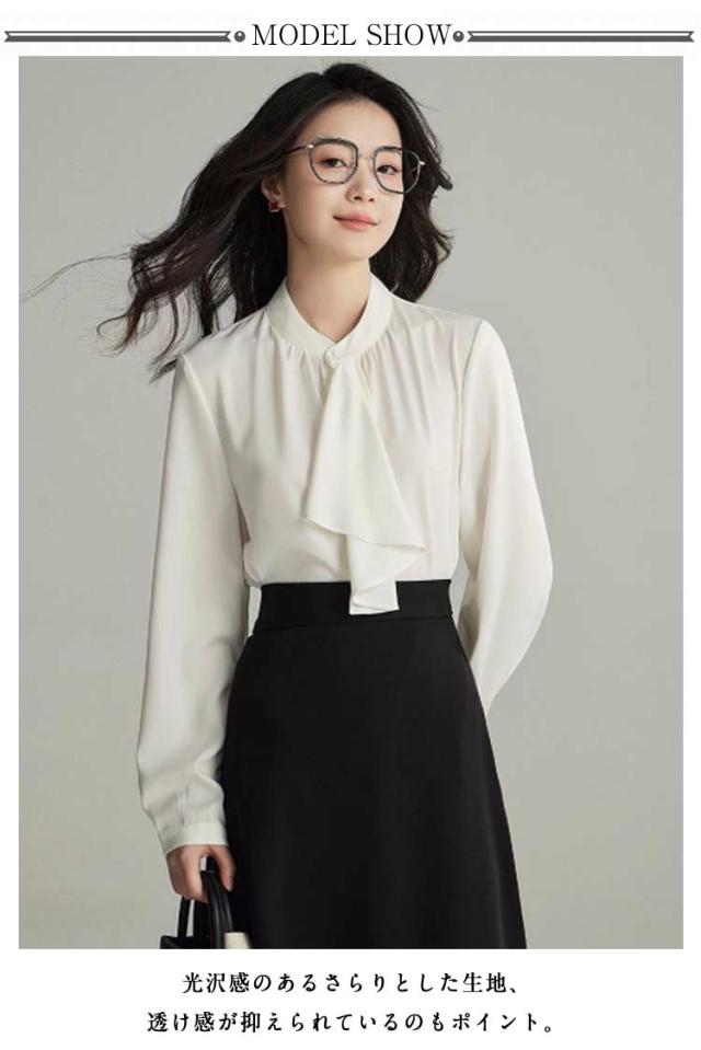 きれいめ ブラウス シャツ サテン スーツインナー リボン レディース オフィス シャツ ビジネス フォーマル 通勤 普段着 大きいサイズ とろみワイシャツ 通勤 事務服 ビジネス オフィス