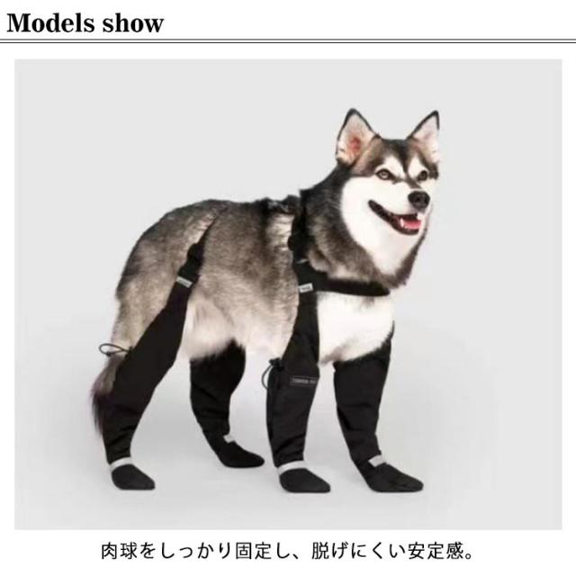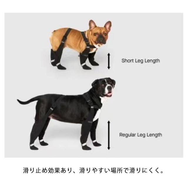 | ・犬用レッグカバー ・肉球をしっかり固定し、脱げにくい安定感。 ・滑り止め効果あり、滑りやすい場所で滑りにくく。 ・雨や雪の日のお散歩に最適です! | |