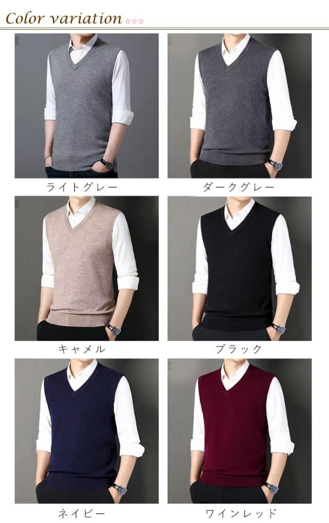| 男性用の無地Vネックニットベスト ビジネスをオシャレに暖かく、いい男を演出するアイテム。 無地でシンプルなデザインなので、着回し性抜群、スーツに合わせやすいスタンダードなベストです。 着ぶくれせずすっきりと着こなせます。 な無地で礼装やフォーマルもOK | |