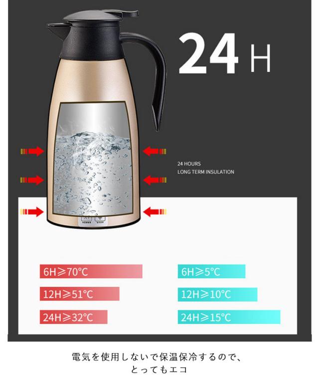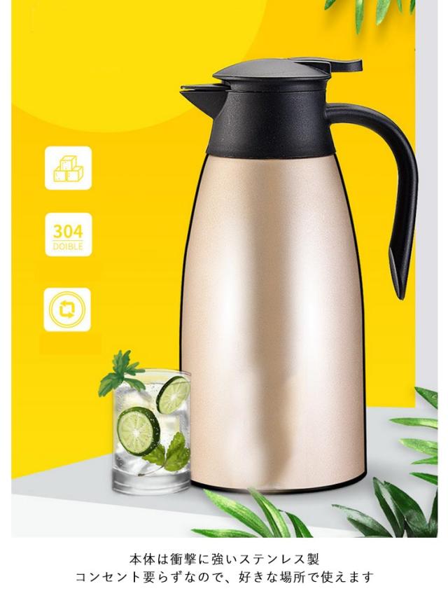 卓上ポット 魔法瓶 持ち運び 2リットル 大容量 2.0L ステンレス 保温 真空断熱 ポット おしゃれ 保冷 注ぎやすい 卓上ポット 省エネ 節電 お湯