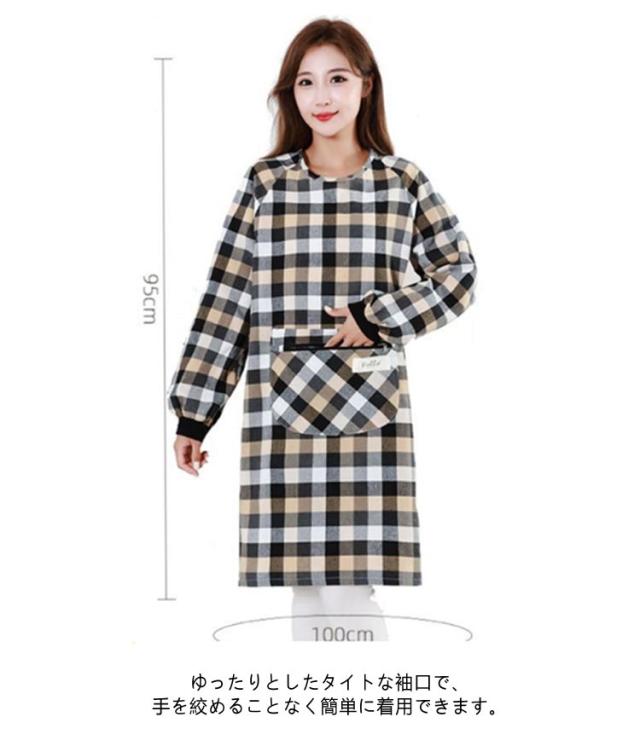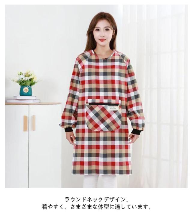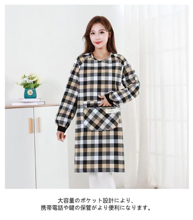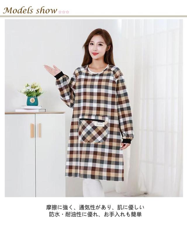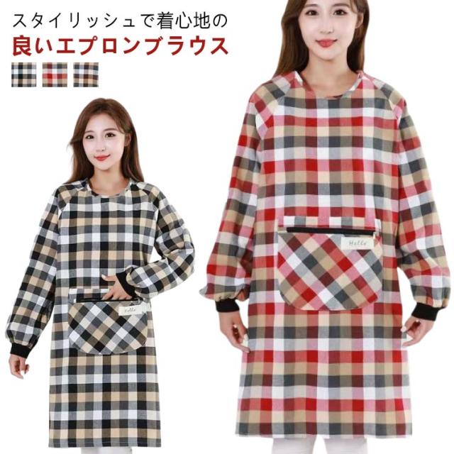 割烹着 ルームウェア ウエアタイプ かっぽう着 おしゃれ チェック柄 ウェア 前ポケット付き かわいい レディース スモック 汚れ防止 防油 チェック 割烹着 保育士 幼稚園