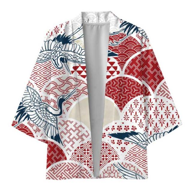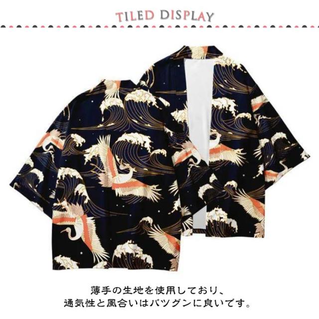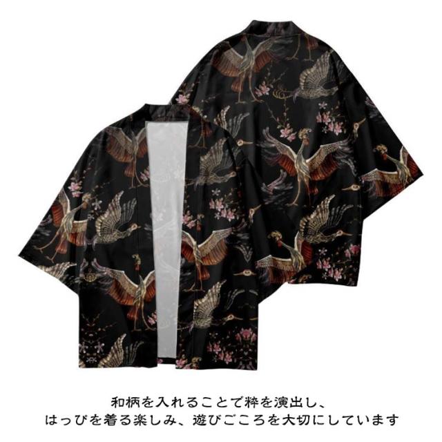 桜 法被 カーディガン ツル 寺 夏祭り ハッピ 子供〜大人 神社 着物 羽織り キッズ 和装 法被 浴衣 半纏 はっぴスタイル お祭り衣装 半天 半被 カーディガン 袢天 羽織り 個性的 イベント はんてん 男女兼用 かっこいい かわいい