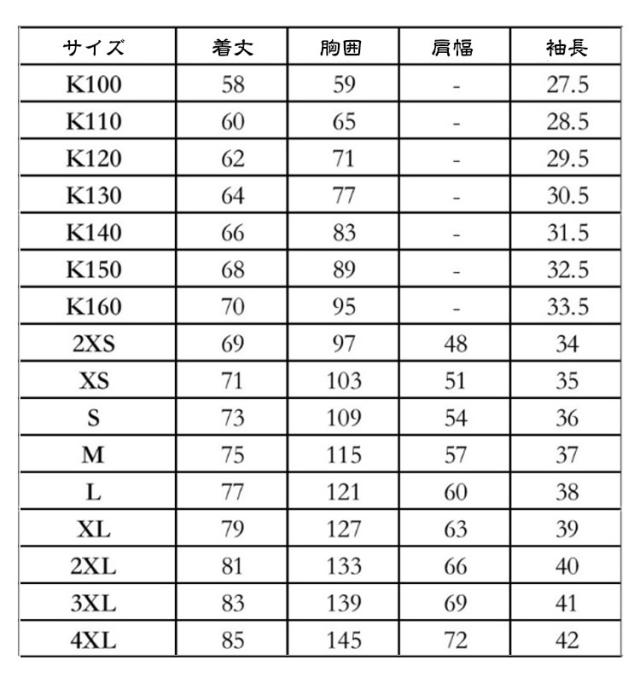 | サイズ | 100 110 120 130 140 150 160 XXS XS S M L XL 2XL 3XL 4XL |