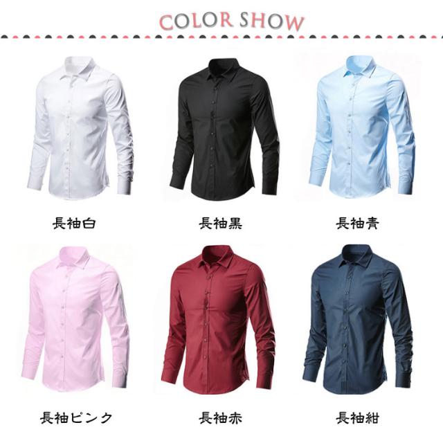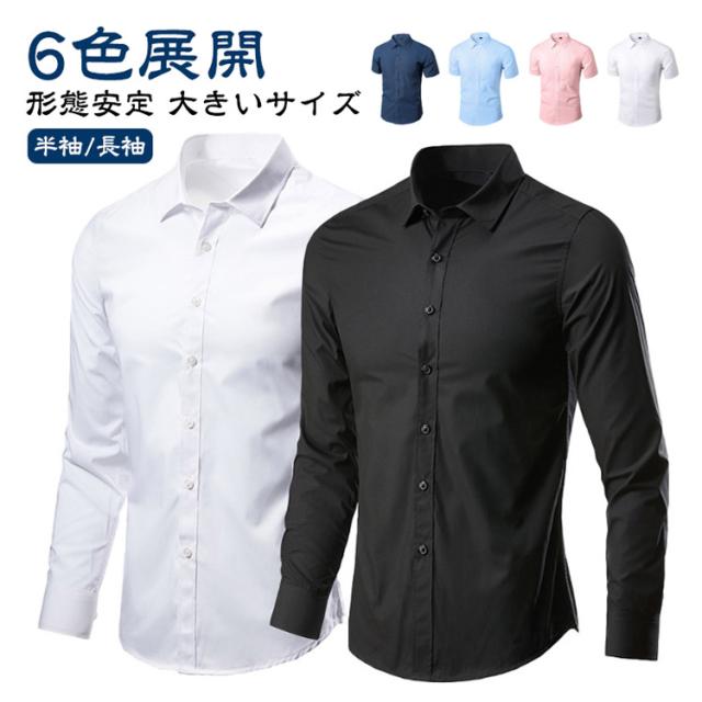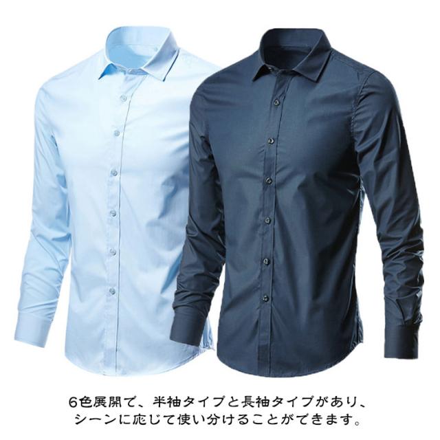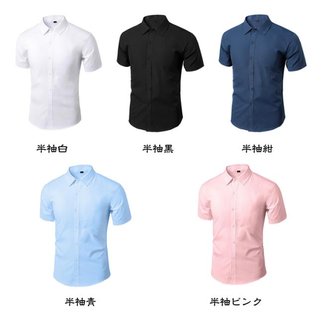 ノーアイロン 形態安定 半袖/長袖 メンズ ワイシャツ ドレスシャツ 黒 紺 シャツ Yシャツ スリム カラーシャツ シャツ ビジネスシャツ 大きいサイズ ワイシャツ カジュアル パーティー 結婚式 二次会 黒シャツ 父の日 ギフト