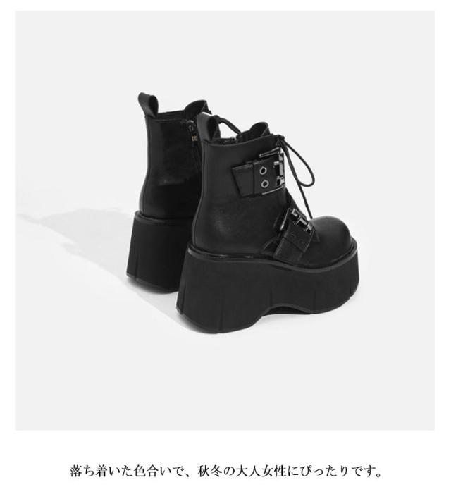 レースアップ 編み上げ 厚底ブーツ ヒール9cm 歩きやすい ショートブーツ カジュアル レディース 身長アップ 疲れない コスプレ レースアップ サイドファスナー 編み上げ ライブ アイドル ヒール9cm 脚長 美脚 身長盛れる 秋 冬 通年