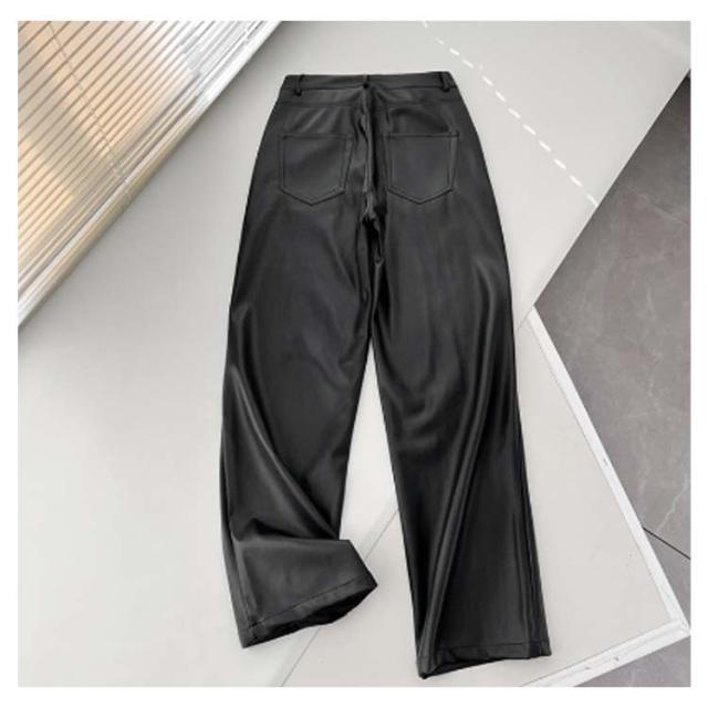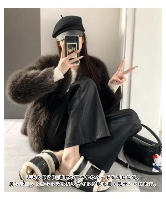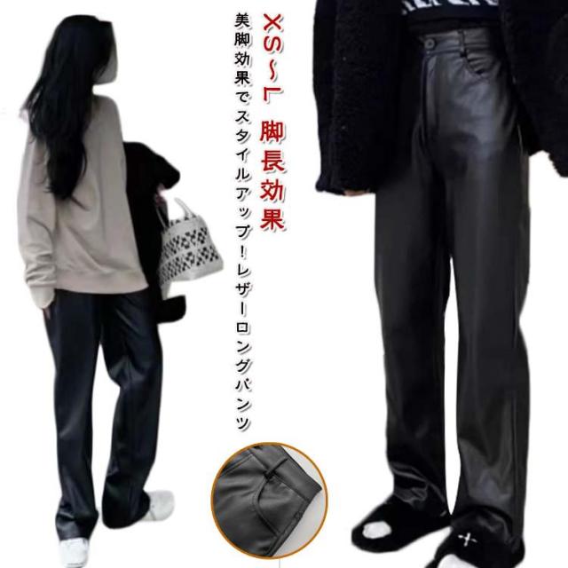 ロング丈 レザーパンツ 秋冬 ストレートパンツ 防水 ワイドパンツ 快適 フェイクレザー レザーパンツ ゆったり 革パンツ 春服 カジュアルパンツ ロングパンツ 脚長効果 光沢感 ブラック 美脚 大人 女性 無地 上品 高級感 通勤 黒