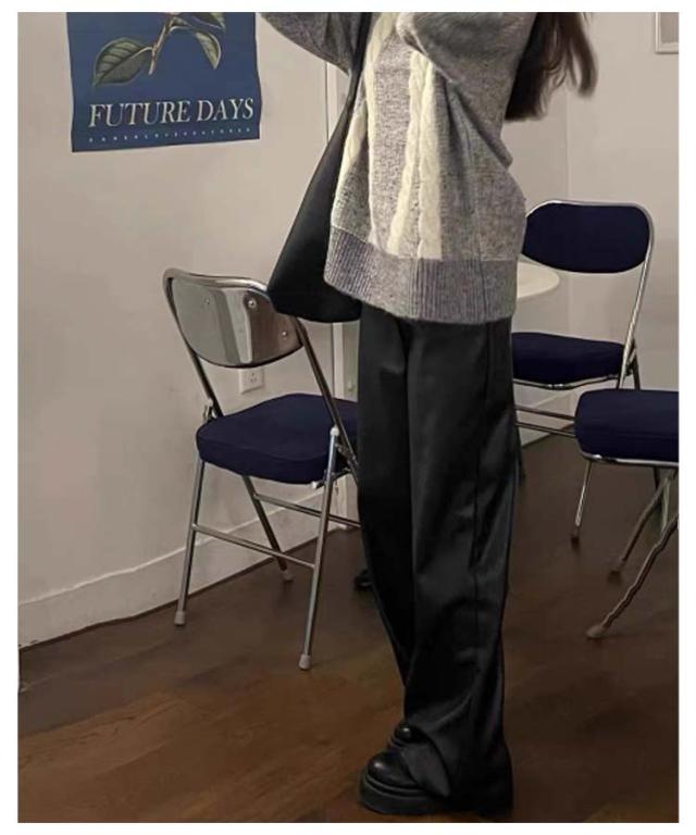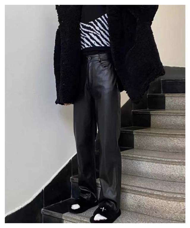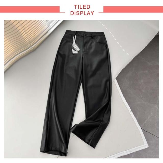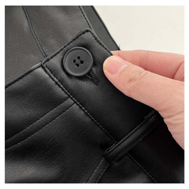 | 美脚効果でスタイルアップ!レザーロングパンツ 光沢のあるPU素材が爽やかなムードを漂わせて、美シルエットのシンプルなデザインが脚を細く見せてくれます。 ブラックのシンプルなデザインは、様々なシーンでお使いいただけます。 | |