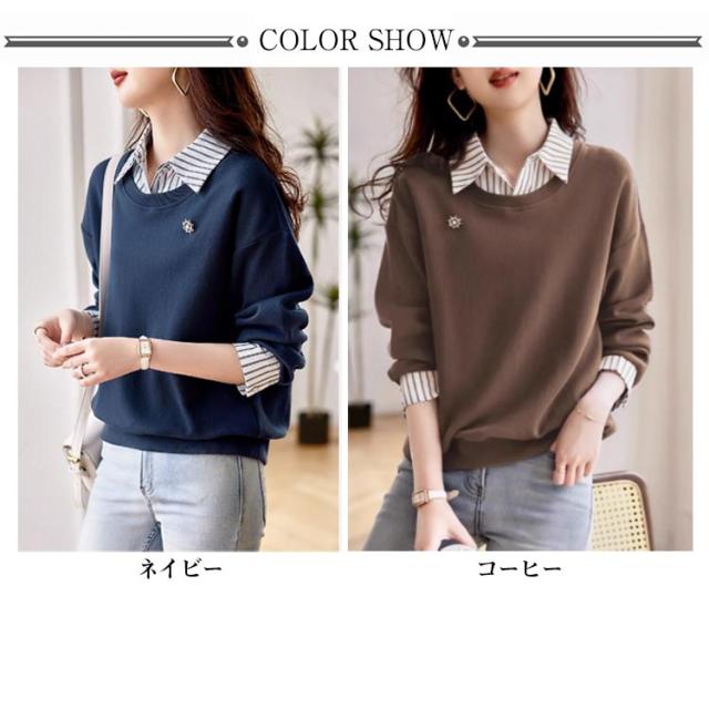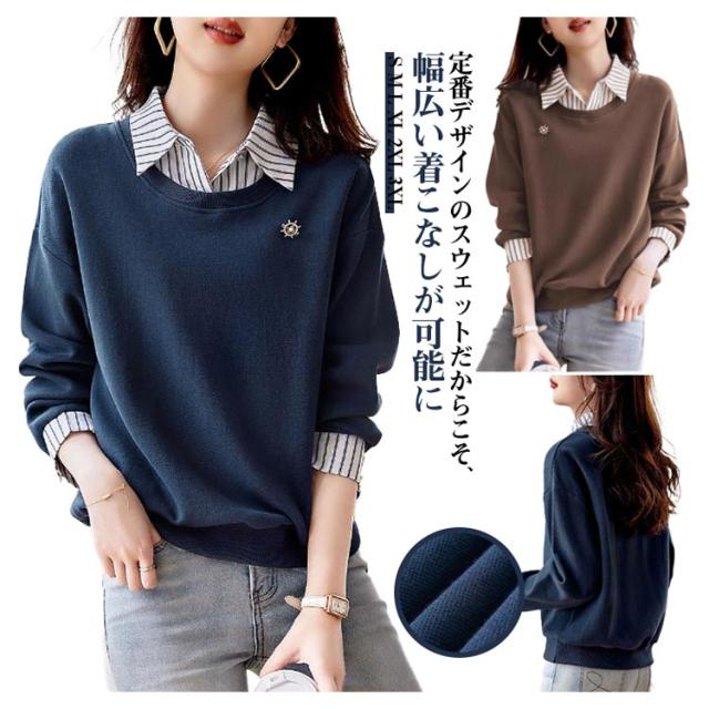 トレーナー スウェット レディース トップス 無地 おしゃれ 長袖 大きいサイズ 韓国 メンズ 大人 部屋着 スウェット カットソー 長袖 大きめ ゆったり 重ね着 トレーナー レイヤード風 体型カバー 春 秋 冬 カジュアル シンプル 送料無料 プレゼント