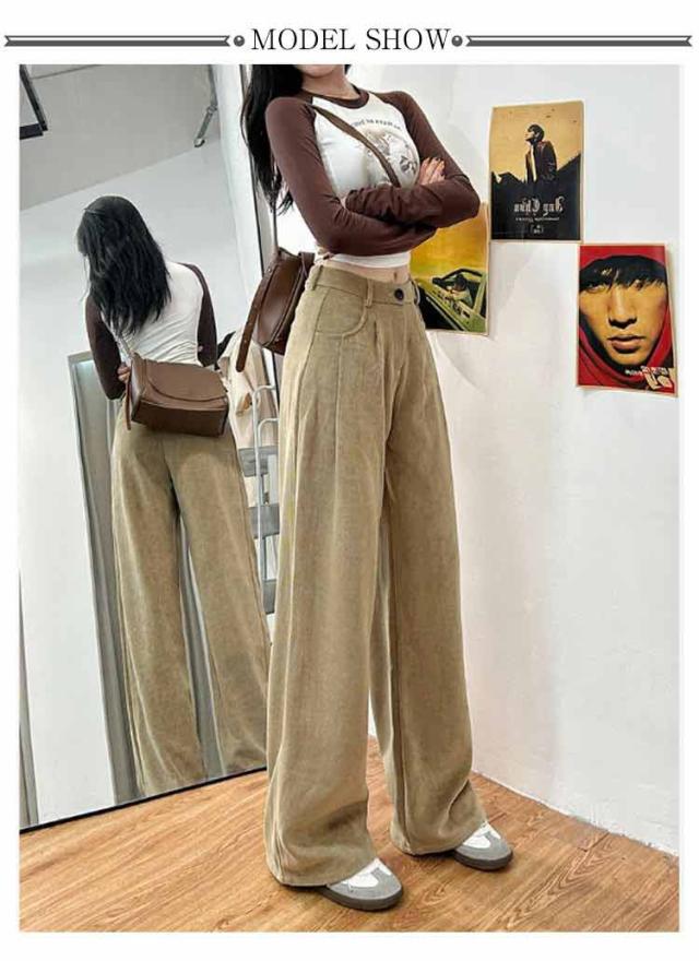 レディース コーデ 低身長 コーデュロイ ワイドパンツ きれいめ ハイウエスト 秋 ガウチョパンツ 大きいサイズ トップス プレスパンツ 春 きれいめ ワイドパンツ リラックス ウェストゴム 冬 夏 ストレートパンツ ツイード パンツ デニム あったか ゆったり