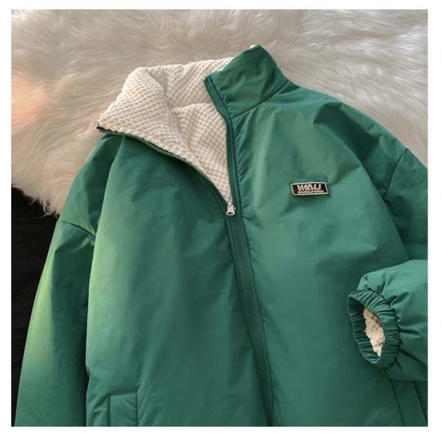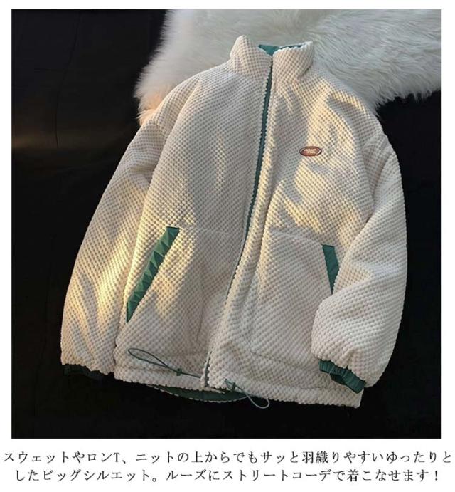 中綿ジャケット リバーシブル ジャケット あたっか ブルゾン ボアジャケット スタンドカラー メンズ オーバーサイズ 裏ボア アウター 秋 中綿 春 厚手 冬 防寒 中綿ジャケット ワンポイント シンプル カジュアル 学生 通学 通勤 大きいサイズ 緑 グリーン