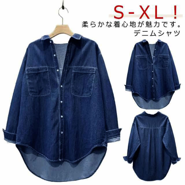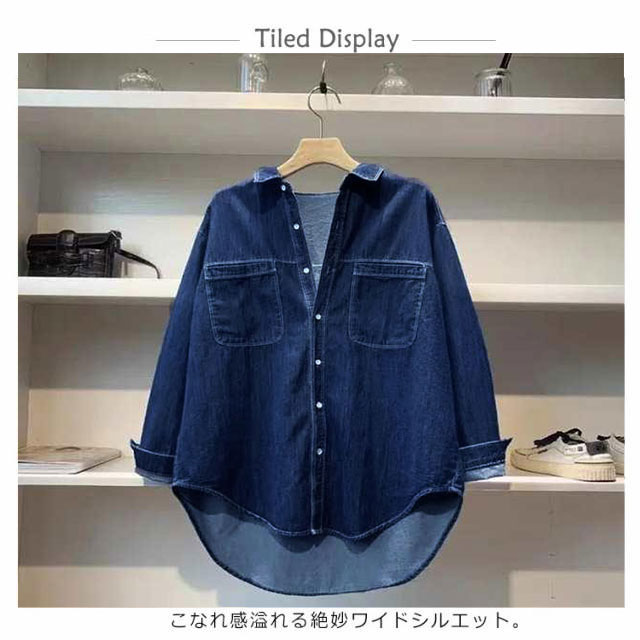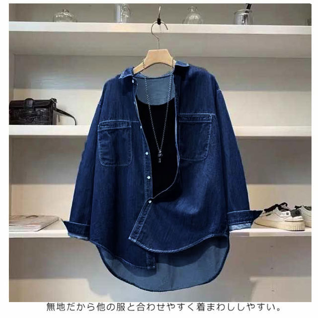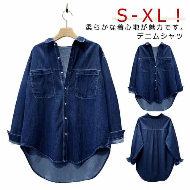 | S-XL!柔らかな着心地が魅力です。デニムシャツ こなれ感溢れる絶妙ワイドシルエット。 無地だから他の服と合わせやすく着まわししやすい。 | |