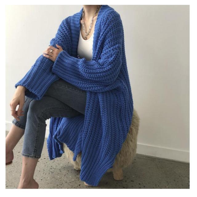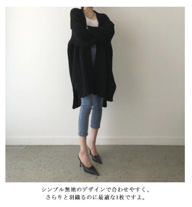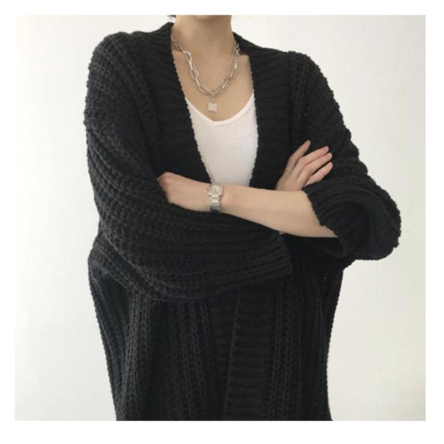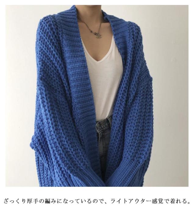 | 1枚あると着回しも効いて便利なニットカーディガンが登場。 ざっくり厚手の編みになっているので、ライトアウター感覚で着れる。 オーバーサイズシルエットと、ボリュームあるスリーブがゆったりこなれ感をプラスしてくれます。 シンプル無地のデザインで合わせやすく、さらりと羽織るのに最適な1枚ですよ。 | |