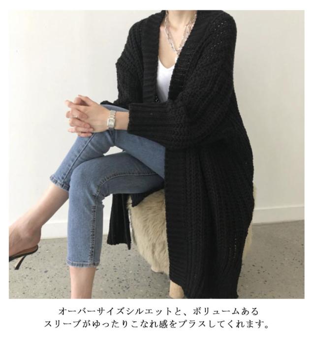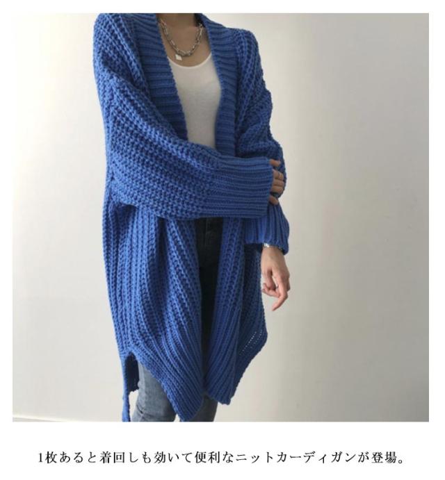 ニット レディース ざっくり ボリューム カーディガン アウター 羽織り ロングカーディガン スリット オーバーサイズ 大きサイズ 体型カバー ロング丈 厚手 秋冬 春 大人 可愛い