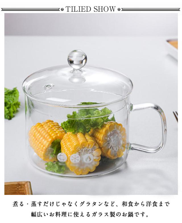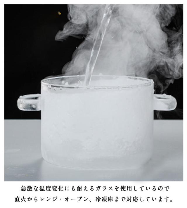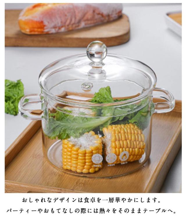 両手鍋 ふた付き ガラス鍋 透明 鍋 透明調理鍋 耐熱ガラス ガラス鍋 蓋物 赤ちゃん 離乳食 ガラス鍋 ガラス食器 ふた物 小鉢 おしゃれ ガラスケース スープポット 煮物椀 ガラスポット 電子レンジ使用可 煮込み鍋