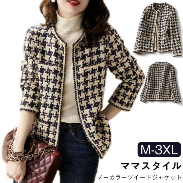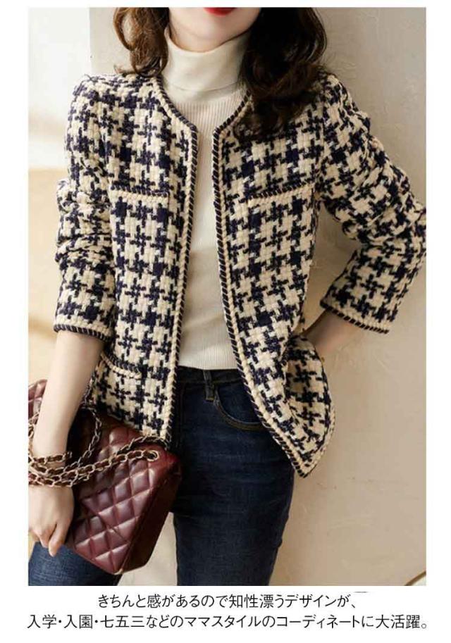 アウター ジャケット 女性向け レディース ツイード ノーカラー ツイードジャケット 春 ノーカラージャケット ツイード 入学式 卒業式 七五三 ママスタイル 30代 40代 50代