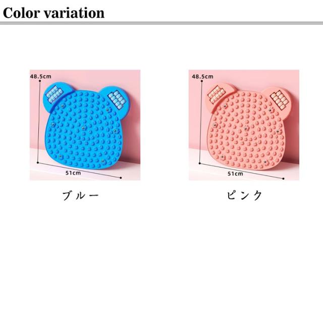 | 可愛いクマ型!自宅で気軽に足つぼマッサージ! 踏むだけで簡単に使える足つぼマットです。 2種類の突起が足つぼを心地よく刺激します。 7つの磁石付きで、足裏にさらに心地よい刺激をプラス。 底面には滑り止め加工が施されており、滑りにくく安全に使えます。 水洗い可能で、いつでも清潔にお使いいただけます。 | |