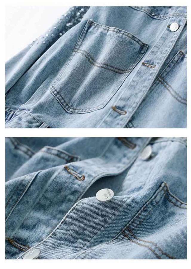 Gジャン デニムジャケット カジュアル スパンコール ジージャン レディース ショート丈ジャケット スプリングコート キラキラ 春秋 春コート デニム 韓国風 ジージャン 30代 アウター 春服 秋服 おしゃれ