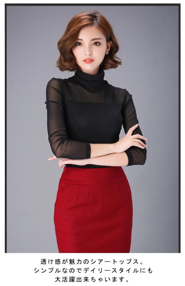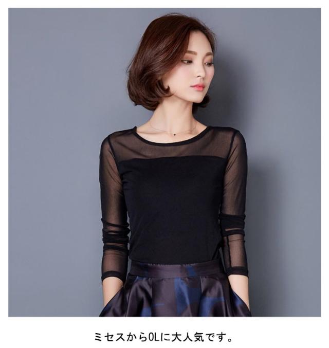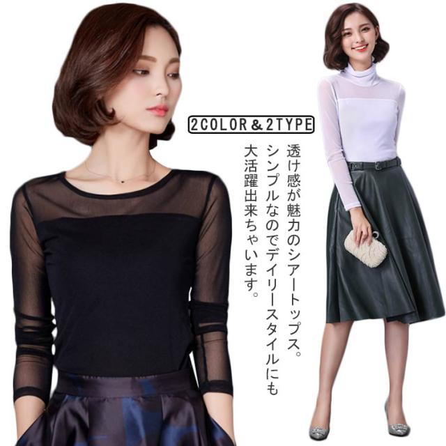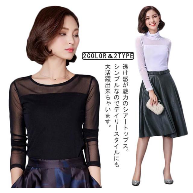 レース ブラウス 無地 インナー カットソー 長袖 フォーマル シースルー トップス 透け 春 シアー 大人 上品 セクシー 肌見せ トップス 冬 夏 秋 レディース レース ハイネック Uネック 黒 オフィス カジュアル ミセス 30代 40代 50代 大きいサイズ