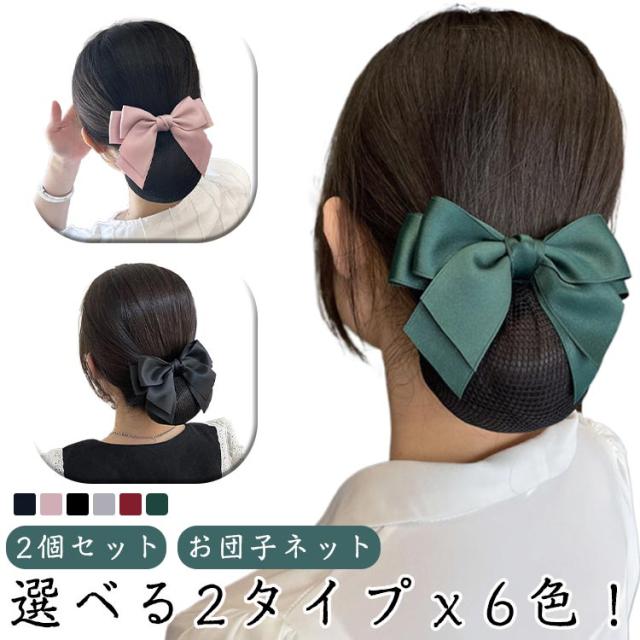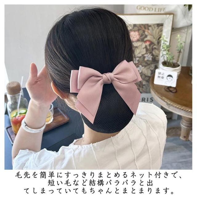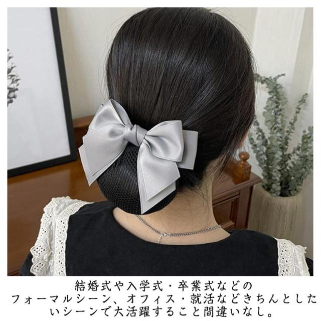 リボンバレッタ 【2個セット】 ネット付 シニヨン バレッタ サテンリボン お団子ネット お団子カバー まとめ髪 髪留め シンプル オフィス 冠婚葬祭 お葬式 お団子ネット 簡単 ヘアアレンジ 無地 送料無料