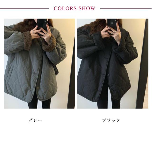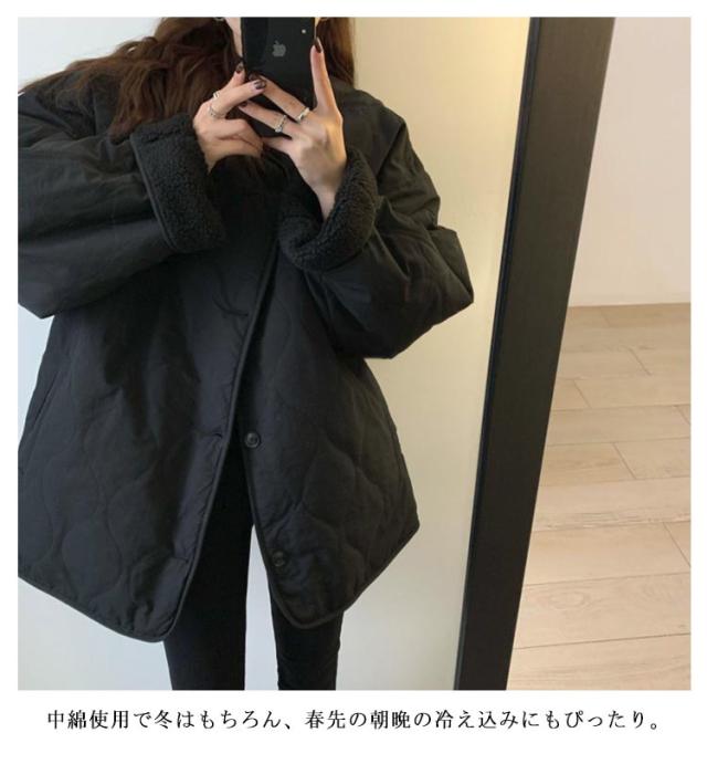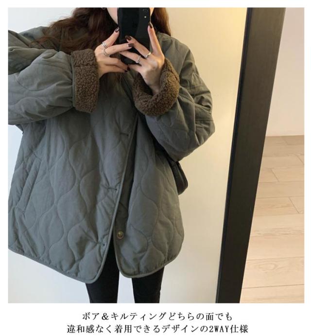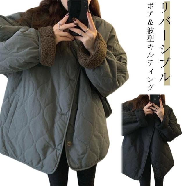 裏起毛 ノーカラージャケット 中綿ジャケット キルティングジャケット ボアジャケット レディース コート きれいめ 波型 リバーシブル アウター 春 秋 冬 中綿 こなれ感 あたっか 防寒 ゆったり キルティング おしゃれ 大人 キルティングジャケット カジュアル