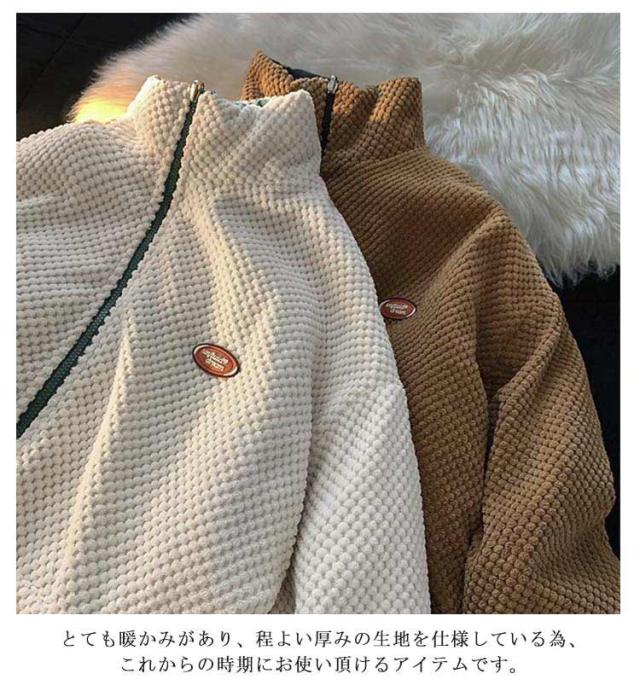 | 両面で着用できるリバーシブルジャケット ボアフリース面で着ればカジュアル感があり、ポリエステル面ではスッキリとした違う印象です。 スウェットやロンT、ニットの上からでもサッと羽織りやすいゆったりとしたビッグシルエット。ルーズにストリートコーデで着こなせます! 首元をしっかりと覆うスタンドネック とても暖かみがあり、程よい厚みの生地を仕様している為、これからの時期にお使い頂けるアイテムです。 1着あるだけで様々なスタイルに対応できる、万能な1着となっています | |