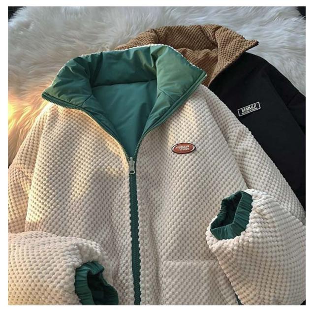 中綿 メンズ ジャケット 厚手 アウター 裏起毛 スタンドカラー 中綿ジャケット ブルゾン ボアジャケット 中綿ジャケット 秋 冬 春 リバーシブル 裏ボア あたっか 防寒 ワンポイント シンプル カジュアル 学生 通学 通勤 大きいサイズ 緑 グリーン