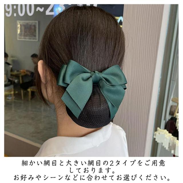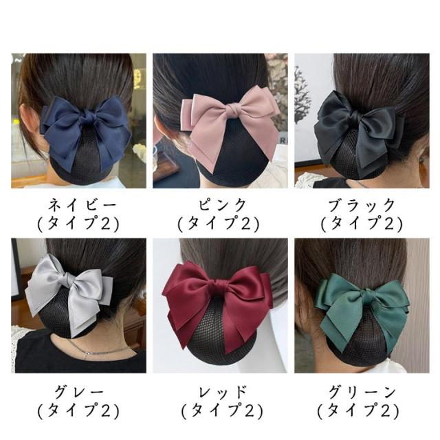 | 選べる2タイプx6色! ネット付きリボンバレッタ 毛先を簡単にすっきりまとめるネット付きで、短い毛など結構パラパラと出てしまっていてもちゃんとまとまります。 結婚式や入学式・卒業式などのフォーマルシーン、オフィス・就活などきちんとしたいシーンで大活躍すること間違いなし。 細かい網目と大きい網目の2タイプをご用意しております。お好みやシーンなどに合わせてお選びください。 | |