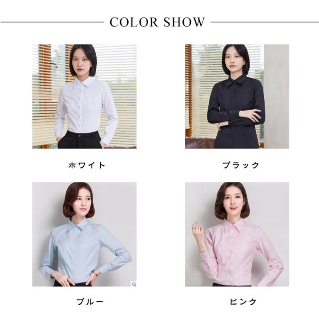 襟付き お洒落 伸縮性 ワイシャツ 通学 通勤 ブラウス 就活 オフィス ブラウス 長袖 Yシャツ 着痩せ カジュアル 形態安定 レディース ビジネス レギュラー 事務服 ユニフォーム 大きいサイズ リクルート
