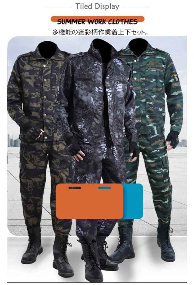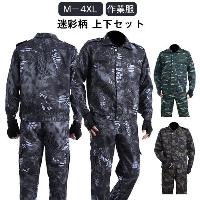 作業服 ジャケット 作業服 セットアップ 迷彩柄 ロングパンツ アメカジ ミリタリー マルチポケット 上下セット 作業着 ワーク おしゃれ メンズ お仕事 春 秋 農業 修理工場 アウトドア