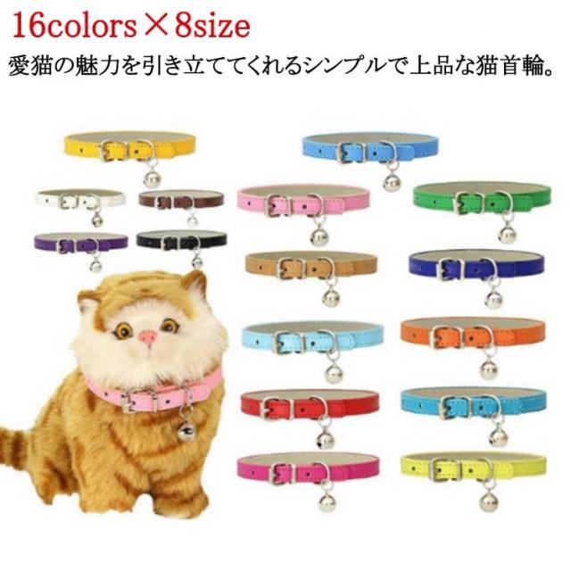 PUレザー 合成皮革 首輪 ギフト シンプル 小型犬 猫の首輪 鈴付き 可愛い おしゃれ 猫用 ペット 16colors×8size 猫首輪 PUレザー 子猫 サイズ調整可能 ペットグッズ セーフティ 安全 首輪 かわいい ねこ くびわ お洒落 猫用品 犬用品