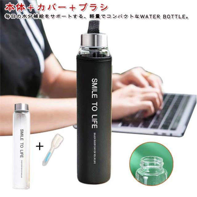 ガラス スリム ガラス瓶 直飲み スリム カバー付き ウォーターボトル 透明 クリアボトル ピッチャー ブラシ付き マイボトル 水筒 耐熱 洗いやすい お茶 ドリンク おしゃれ 北欧 シンプル ギフト プレゼント