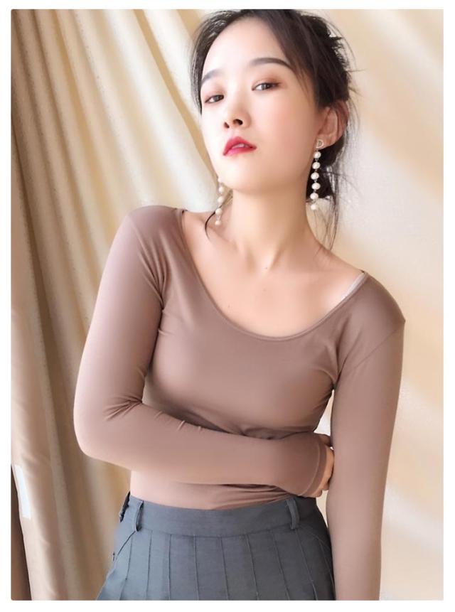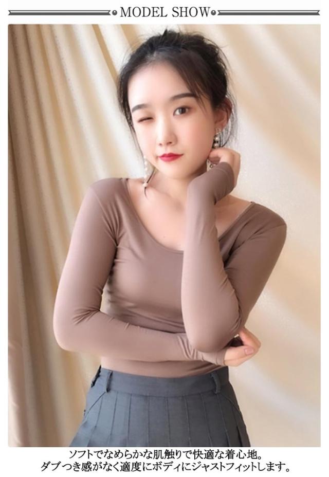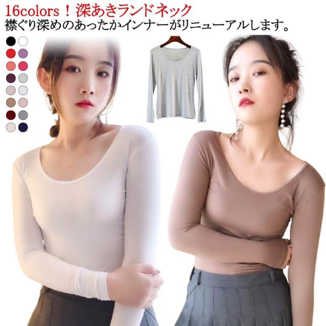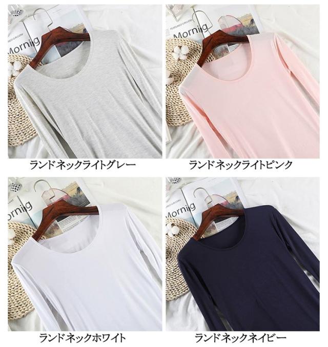 ランドネック 肩開き バレエネック 保温 深あき インナー Tシャツ 長袖 襟ぐり広め ルームウェア 肌着 お洒落 キレイめ クルーネック シルエット レディース あったか 部屋着 秋冬用