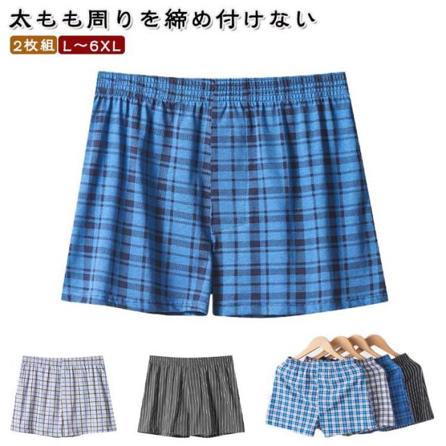 ショーツ 通気性 三分丈 インナー コットン 綿 ボックスショーツ チェック柄 ストライプ 2枚セット ルームパンツ 快適 吸汗 ルームウェア パンツ 大人男性 トランクス 部屋着 トランクス ウエストゴム 下着 大きいサイズ 2枚組